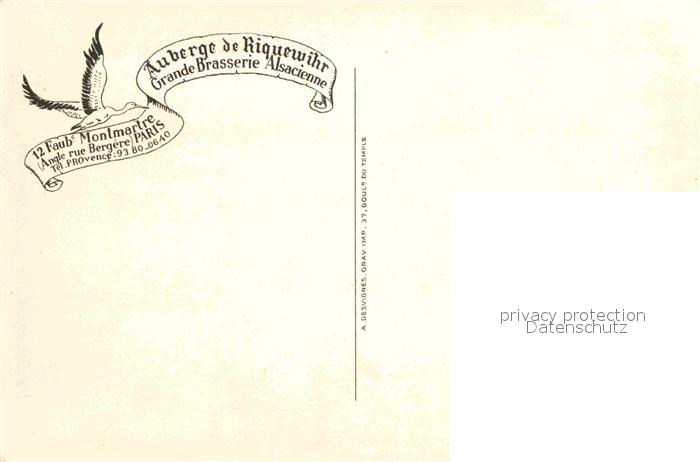 12731835 Paris Auberge de Riquewihr Grande Brasserie Alsacienne Illustration postalisch nicht gelaufen Erhaltung siehe scans [WerneD78] KatCode: 11170075175056