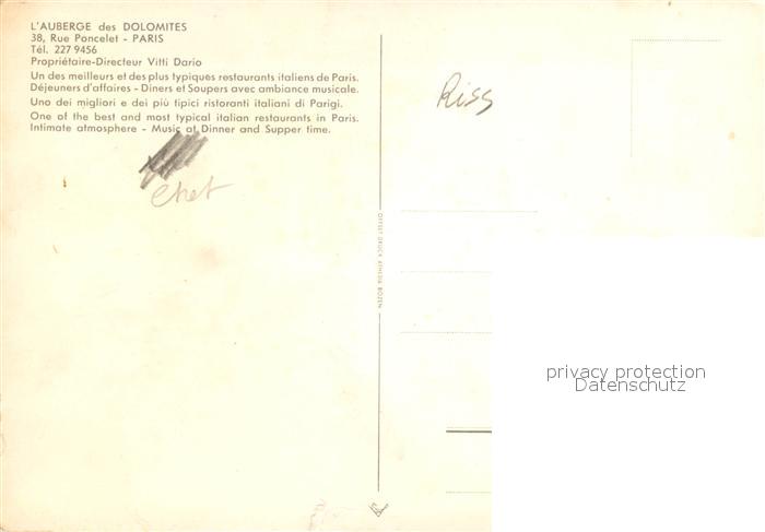13143146 Paris Auberge des Dolomites Details postalisch nicht gelaufen Erhaltung siehe scans [WerneD78] KatCode: 11170075175056