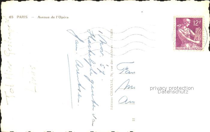 12446670 carte postale Paris Avenue de Opera postalisch gelaufen Erhaltung siehe scans KatCode: 11170075175056