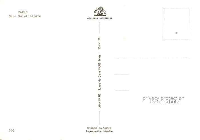 12823016 Paris Bahnhof Saint Lazare postalisch nicht gelaufen Erhaltung siehe scans [AndreD76] KatCode: 11170075175056
