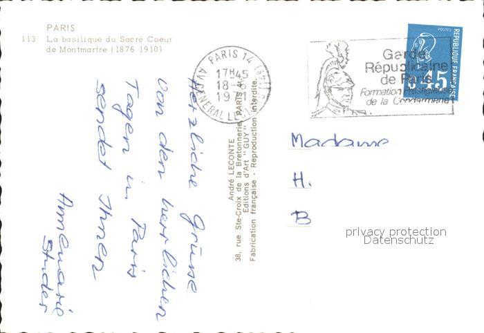 12352918 carte postale Paris Basilique du Sacre Coeur de Montmartre postalisch gelaufen Erhaltung siehe scans KatCode: 11170075175056