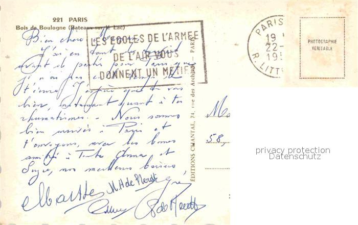 12890945 carte postale Paris Boisde Boulogne Bateaux sur le Lac postalisch gelaufen Erhaltung siehe scans [WerneD78] KatCode: 11170075175056