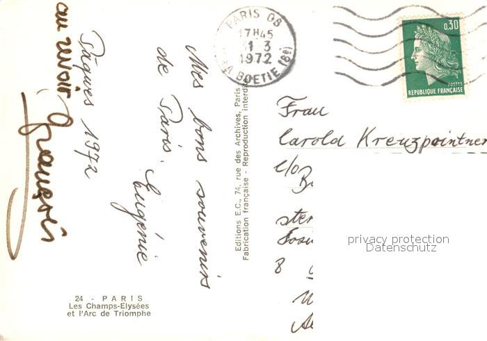 13084327 carte postale Paris Camps Elysees Arc de Triomphe postalisch gelaufen Erhaltung siehe scans [KathaD81] KatCode: 11170075175056