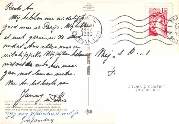 12889531 carte postale Paris Champ-de-mars Palais-du-chaillot postalisch gelaufen Erhaltung siehe scans [LiesaD40] KatCode: 11170075175056