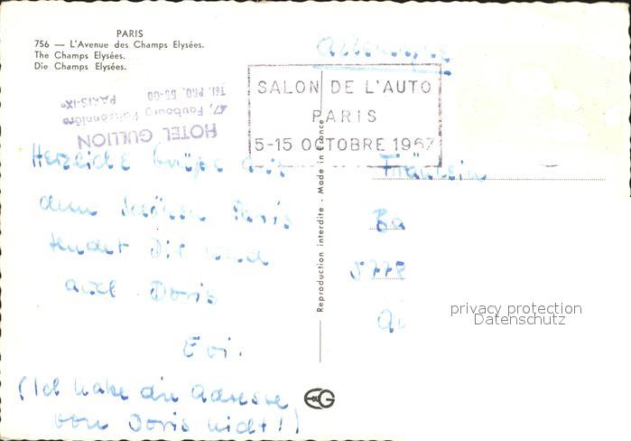 12325065 carte postale Paris Champs Elysees postalisch gelaufen Erhaltung siehe scans KatCode: 11170075175056