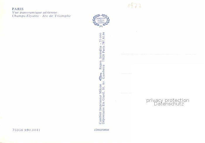 12899084 Paris Champs Elysees Arc de Triomphe Vue aerienne postalisch nicht gelaufen Erhaltung siehe scans [FriedD77] KatCode: 11170075175056