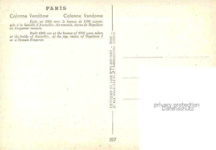 13083781 Paris Colonne Vendome postalisch nicht gelaufen Erhaltung siehe scans [NatalD47] KatCode: 11170075175056