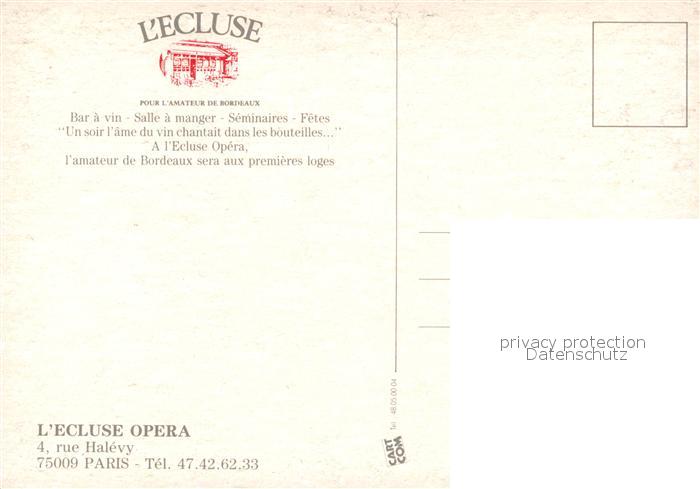13219442 Paris Ecluse Opera Bar a vin Restaurant postalisch nicht gelaufen Erhaltung siehe scans [FriedD77] KatCode: 11170075175056