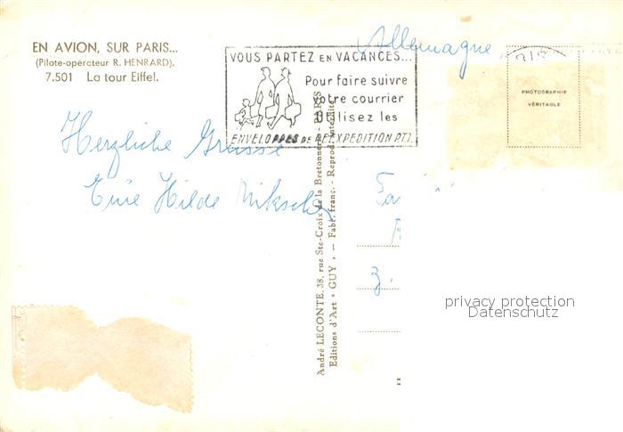 13071722 carte postale Paris Eiffelturm Fliegeraufnahme postalisch gelaufen Erhaltung siehe scans [WerneD78] KatCode: 11170075175056