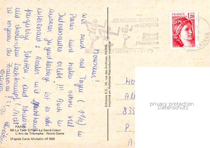 12796787 carte postale Paris Eiffelturm Triumphbogen Notre Dame postalisch gelaufen Erhaltung siehe scans [KathaD81] KatCode: 11170075175056