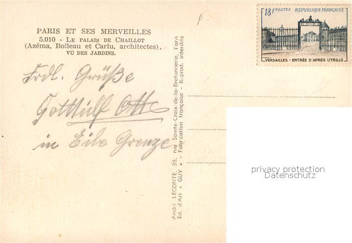 12945685 Paris et ses merveilles Palais de Chaillot Jardins postalisch nicht gelaufen Erhaltung siehe scans [FriedD77] KatCode: 11170075175056