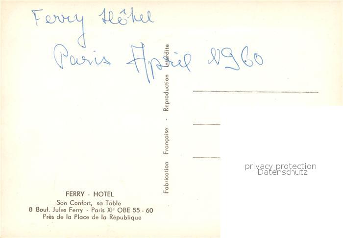13086071 Paris Ferry Hotel postalisch nicht gelaufen Erhaltung siehe scans [FriedD77] KatCode: 11170075175056