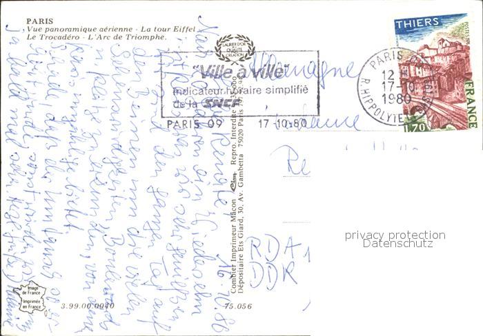 12272930 carte postale Paris Fliegeraufnahme Eiffel Turm postalisch gelaufen Erhaltung siehe scans KatCode: 11170075175056