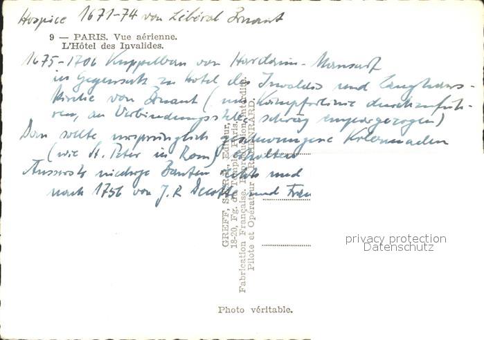 12318644 Paris Fliegeraufnahme Hotel des Invalides postalisch nicht gelaufen Erhaltung siehe scans KatCode: 11170075175056