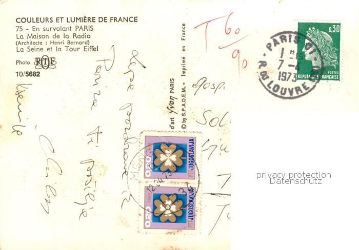 13606736 carte postale Paris Fliegeraufnahme Maison de la Radio Seine et Tour Eiffel postalisch gelaufen Erhaltung siehe scans [LiesaD40] KatCode: 11170075175056