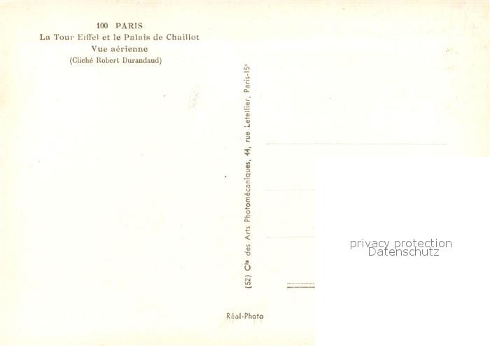 13248767 Paris Fliegeraufnahme Tour Eiffel Palais de Chaillot postalisch nicht gelaufen Erhaltung siehe scans [NatalD47] KatCode: 11170075175056