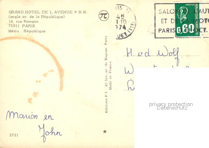 13518785 carte postale Paris Grand Hotel de l’Avenue Monument La Tour Eiffel postalisch gelaufen Erhaltung siehe scans [FriedD77] KatCode: 11170075175056