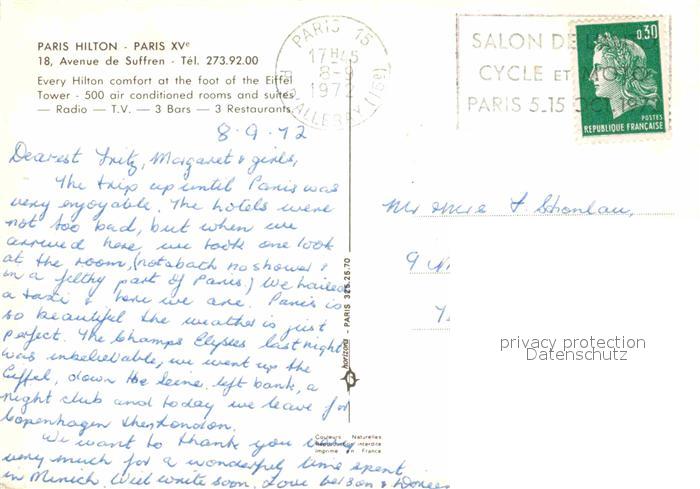 12785268 carte postale Paris Hilton Hotel postalisch gelaufen Erhaltung siehe scans [FriedD77] KatCode: 11170075175056