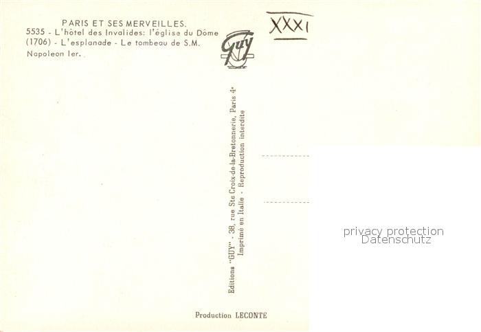 13231740 Paris Hotel des Invalides Eglise du Dome Esplanade Tombeau de S.M. Napoleon ler. postalisch nicht gelaufen Erhaltung siehe scans [LiesaD40] KatCode: 11170075175056