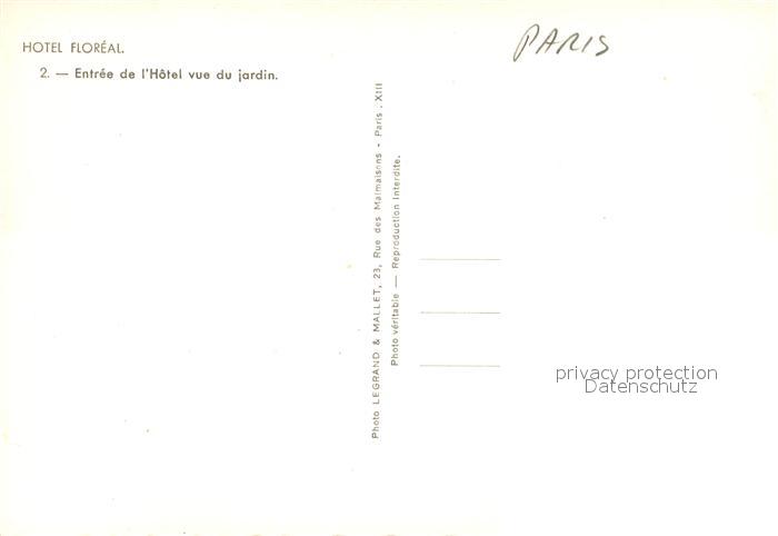 13606376 Paris Hotel Floreal postalisch nicht gelaufen Erhaltung siehe scans [LiesaD40] KatCode: 11170075175056