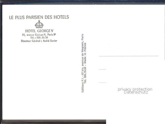 12150407 Paris Hotel Goerge 5 mit Eiffelturm postalisch nicht gelaufen Erhaltung siehe scans KatCode: 11170075175056
