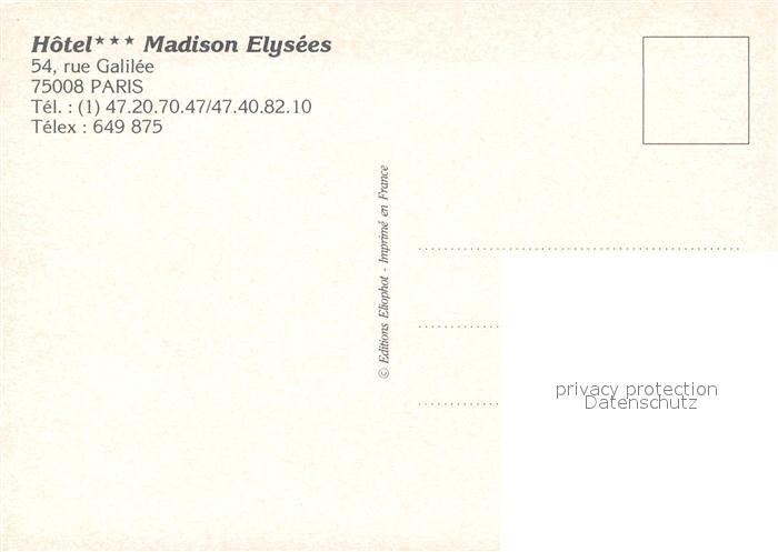 13122012 Paris Hotel Madison Elysees postalisch nicht gelaufen Erhaltung siehe scans [LiesaD40] KatCode: 11170075175056