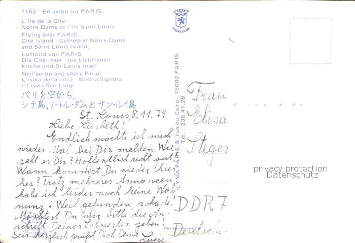 12253723 Paris Ile de la Cite Eglise Notre Dame Ile Saint Louis vue aerienne postalisch nicht gelaufen Erhaltung siehe scans KatCode: 11170075175056