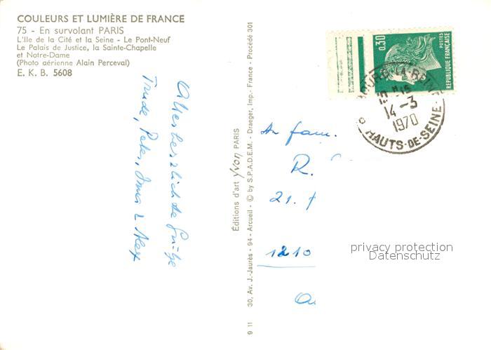 13219445 carte postale Paris Ile de la Cité la Seine Pont Neuf Palaix de Justice Sainte Chapelle Notre Dame vue aérienne postalisch gelaufen Erhaltung siehe scans [FriedD77] KatCode: 11170075175056