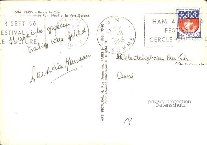 12463297 carte postale Paris Ile de la Cite Le Pont Neuf et le Vert Galant Vue aerienne postalisch gelaufen Erhaltung siehe scans KatCode: 11170075175056