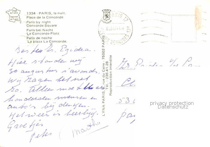 12853654 carte postale Paris La Concorde Platz bei Nacht postalisch gelaufen Erhaltung siehe scans [AndreD76] KatCode: 11170075175056