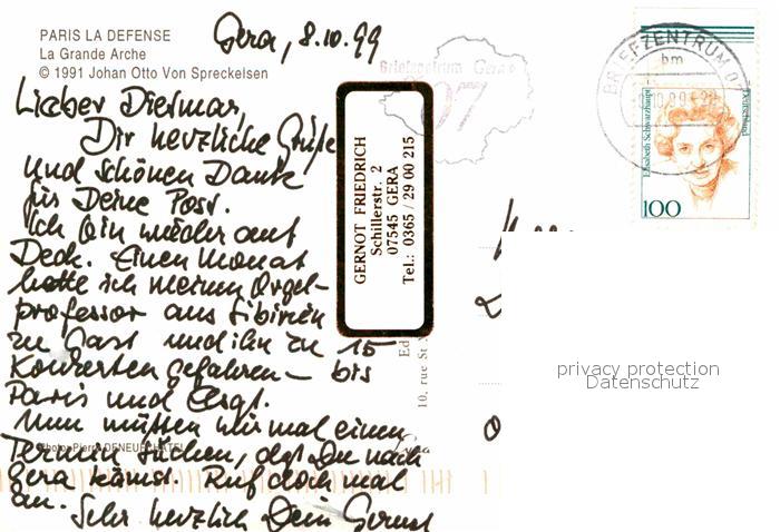 12869730 carte postale Paris La Defense La Grande Arche Architecture postalisch gelaufen Erhaltung siehe scans [FriedD77] KatCode: 11170075175056