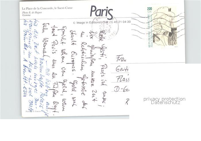 12524126 carte postale Paris La Place de la Concorde le Sacre-Coeur postalisch gelaufen Erhaltung siehe scans KatCode: 11170075175056