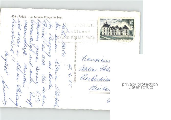 11940738 carte postale Paris Le Moulin Rouge la Nuit postalisch gelaufen Erhaltung siehe scans KatCode: 11170075175056