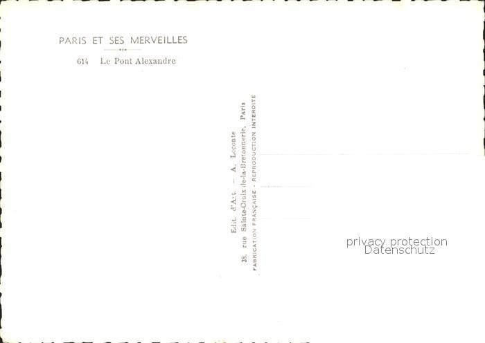 12298133 Paris Le Pont Alexandre postalisch nicht gelaufen Erhaltung siehe scans KatCode: 11170075175056