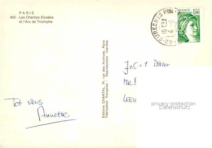 12865134 carte postale Paris Les Champs Elysees et L Arc de Triomphe postalisch gelaufen Erhaltung siehe scans [LiesaD40] KatCode: 11170075175056