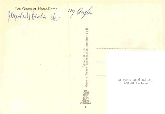 12821514 Paris Les Quais et Notre-Dame postalisch nicht gelaufen Erhaltung siehe scans [AndreD76] KatCode: 11170075175056