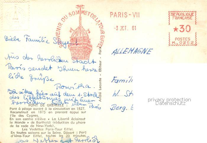 13030172 carte postale Paris Les Vedettes Paris Tour Eiffel postalisch gelaufen Erhaltung siehe scans [WerneD78] KatCode: 11170075175056