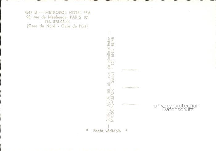 12180969 Paris Metropol Hotel Gastraum Bar Rezeption Zimmer postalisch nicht gelaufen Erhaltung siehe scans KatCode: 11170075175056