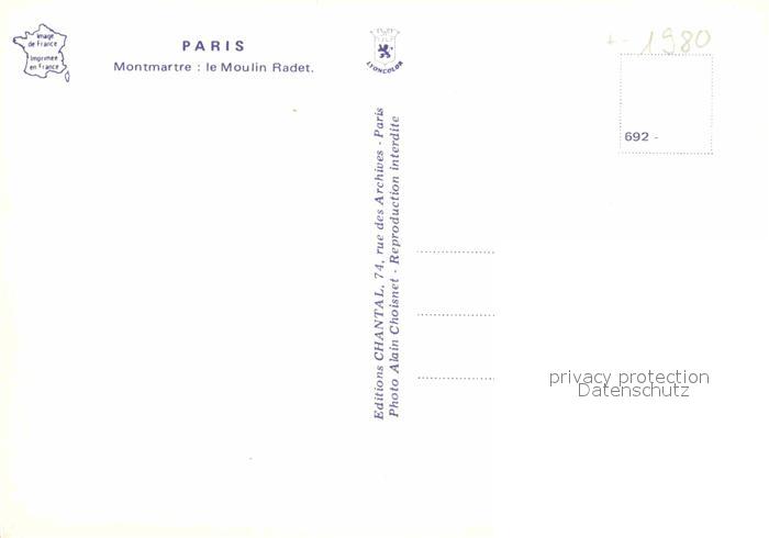 12901069 Paris Montmartre Le Moulin Radet postalisch nicht gelaufen Erhaltung siehe scans [WerneD78] KatCode: 11170075175056
