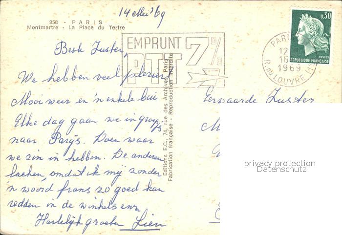 12459869 carte postale Paris Montmartre Place Tertre postalisch gelaufen Erhaltung siehe scans KatCode: 11170075175056