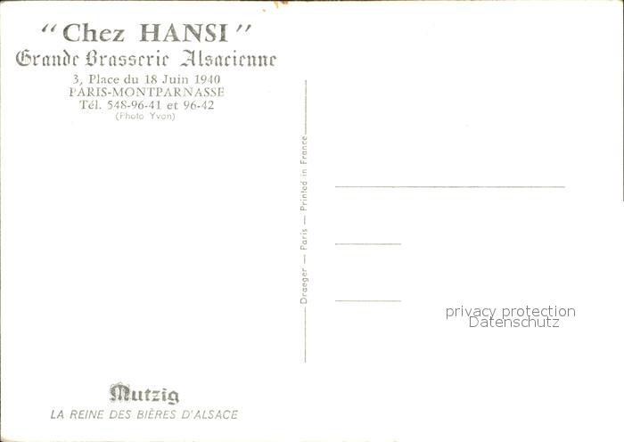 12484822 Paris Montparnasse Schez Hansi Restaurant postalisch nicht gelaufen Erhaltung siehe scans KatCode: 11170075175056