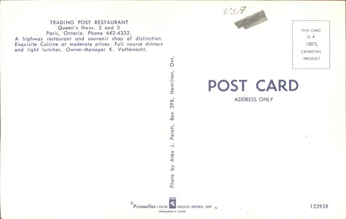 11491776 Paris Ohio Trading Post Restaurant postalisch nicht gelaufen Erhaltung siehe scans KatCode: 14140370000000