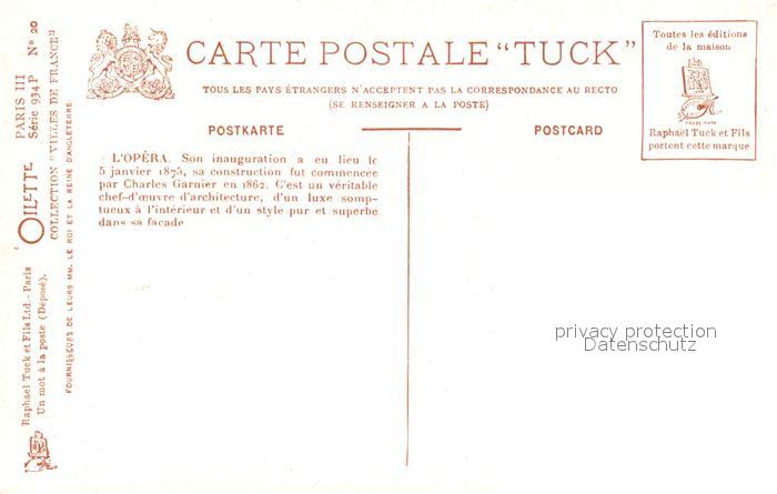 13366307 Paris Opera Oilette Serie 934 No. 20 Kuenstlerkarte postalisch nicht gelaufen Erhaltung siehe scans [FriedD77] KatCode: 11170075175056