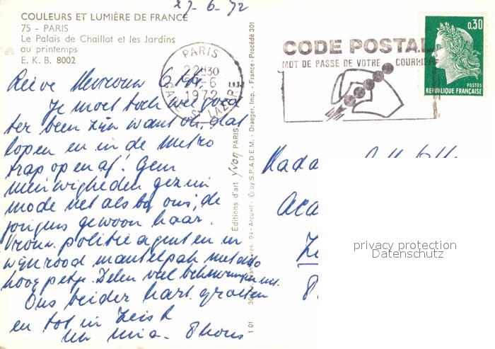 12664439 carte postale Paris Palais de Chaillot et les Jardins postalisch gelaufen Erhaltung siehe scans [WerneD78] KatCode: 11170075175056