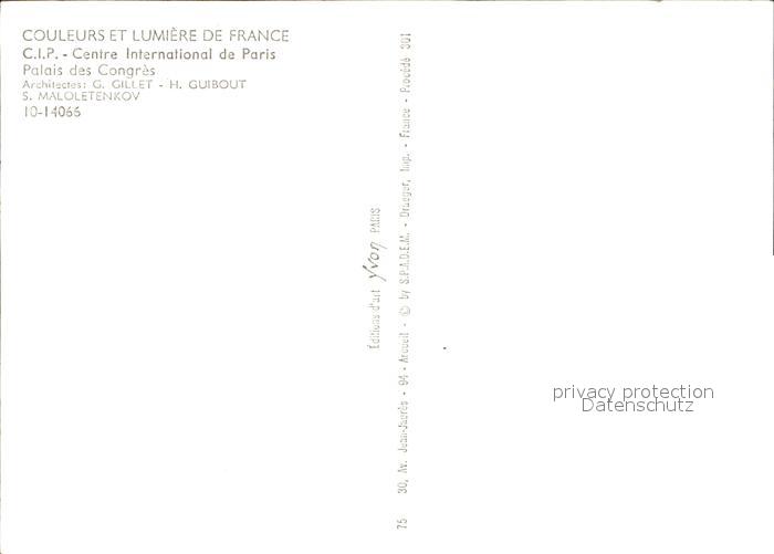 12292870 Paris Palais des Congrès postalisch nicht gelaufen Erhaltung siehe scans KatCode: 11170075175056