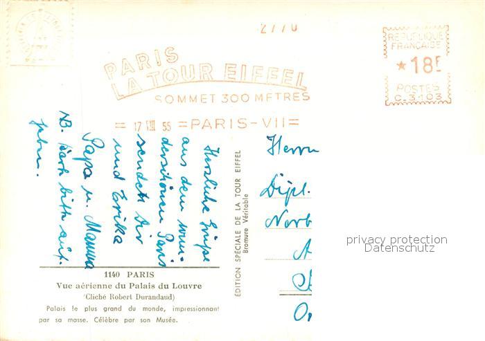 13480937 carte postale Paris Palais du Louvre vue aérienne postalisch gelaufen Erhaltung siehe scans [FriedD77] KatCode: 11170075175056
