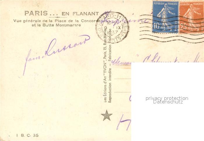13083077 carte postale Paris Place de la Concorde Butte Montmartre postalisch gelaufen Erhaltung siehe scans [NatalD47] KatCode: 11170075175056