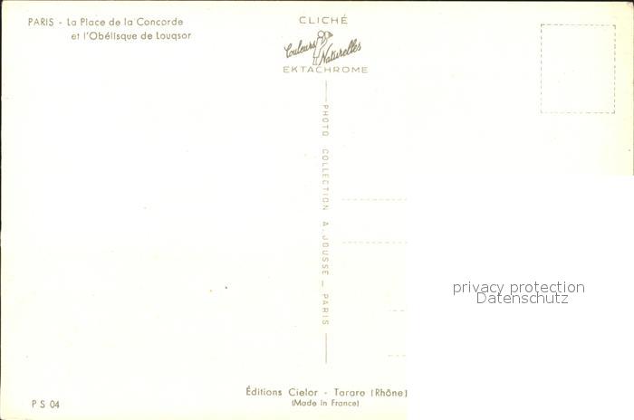 11947363 Paris Place de la Concorde Obelisque de Louqsor postalisch nicht gelaufen Erhaltung siehe scans KatCode: 11170075175056