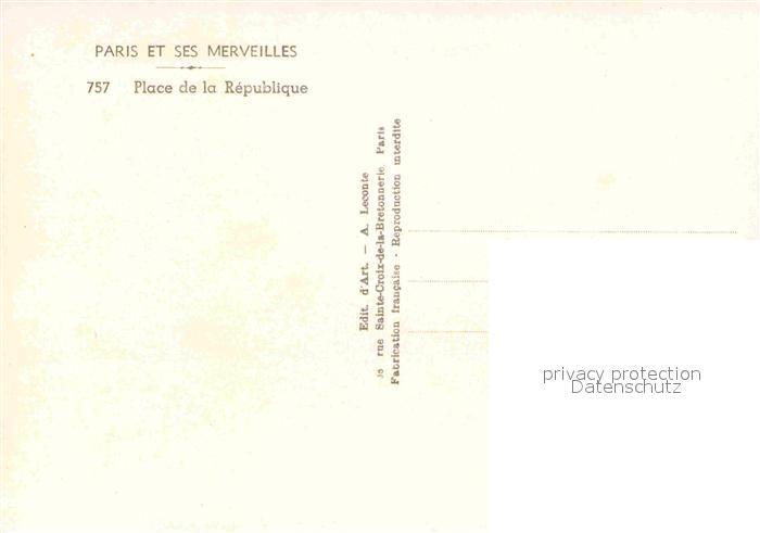 12771409 Paris Place de la Republique postalisch nicht gelaufen Erhaltung siehe scans [WerneD78] KatCode: 11170075175056