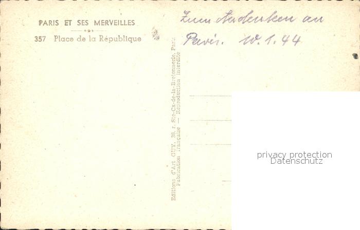 12463531 Paris Place de la Republique Monument postalisch nicht gelaufen Erhaltung siehe scans KatCode: 11170075175056